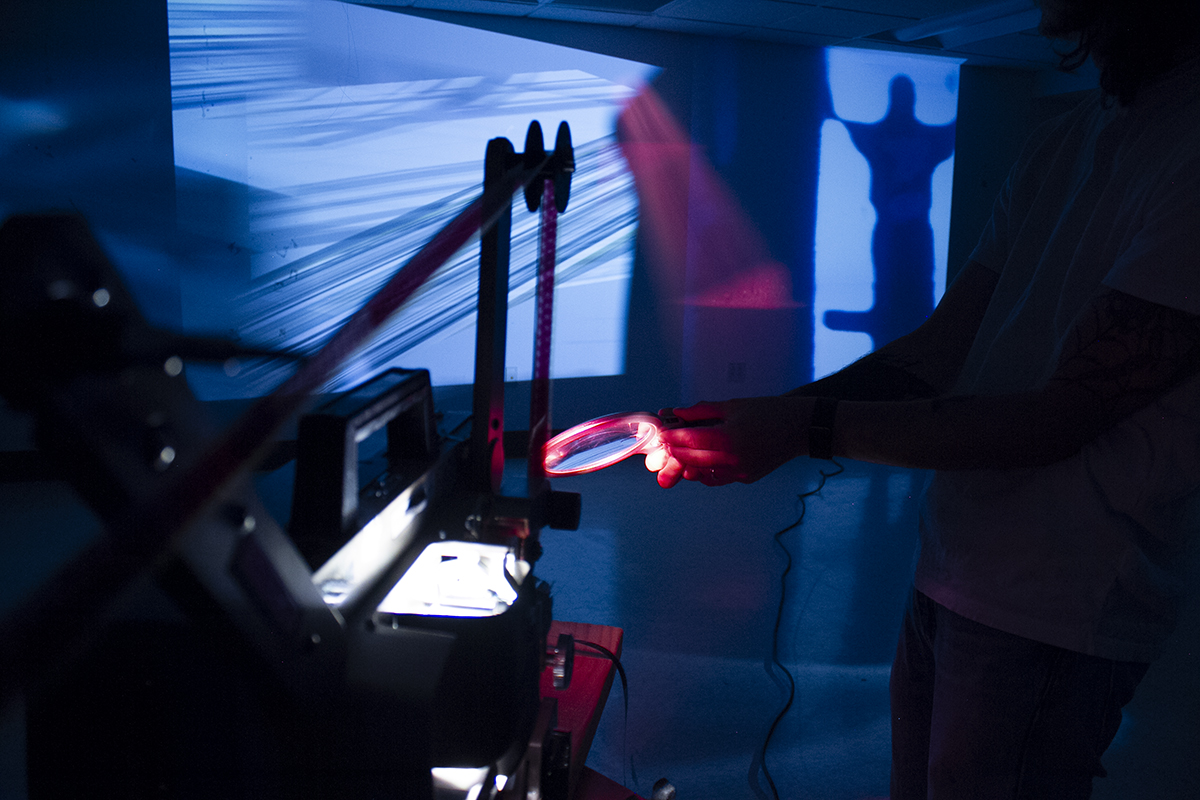 Inside the old Astra Shoe Factory, the Cinema Department will transform an abandoned industrial site into a living cinematic installation. Projectors and cameras scattering light onto reflective surfaces, bouncing it through shifting lenses; sound cracks and mutates through handmade electronics. Nothing is stable: spaces are reimagined, objects recast, and visitors become participants, reshaping the scene as they move. With Monteith McCollum, Christopher Robbins, Andrew Frangella, Brian Gray, and Benjamin Stone, the project echoes how skateboarders reinvent their environment — finding possibility in overlooked corners.